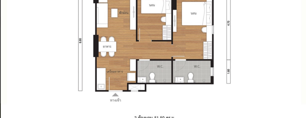 ห้อง2 bedroom ขนาด 51.75 ตร.ม