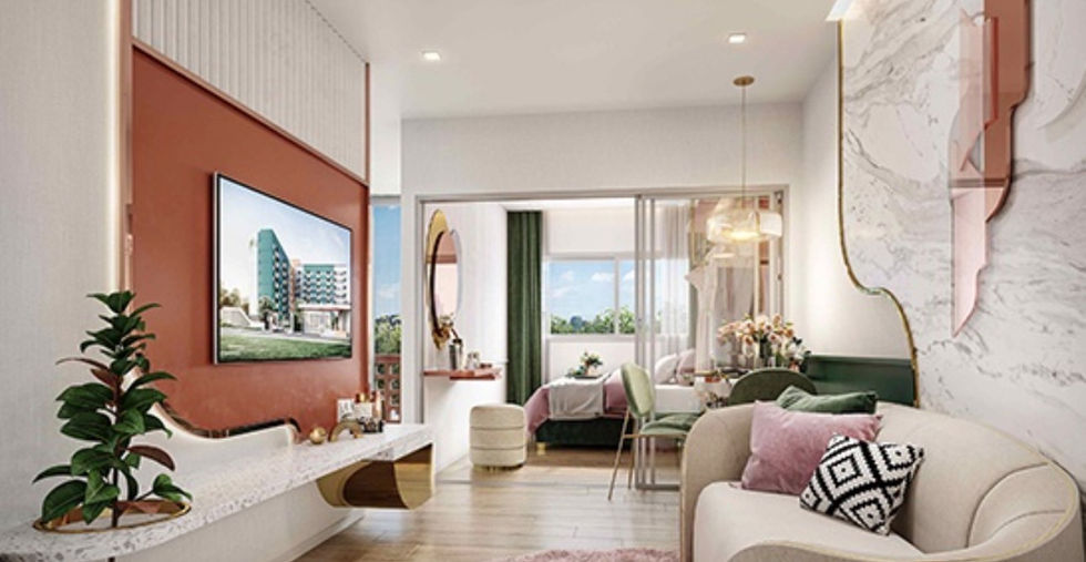 เพิ่มจังหวะให้ชีวิต สนุกสนานไปกับสีสันสดใสของโครงการ ซึ่งได้รับแรงบันดาลใจมาจากสถาปัตยกรรมแถบ Mediterranean